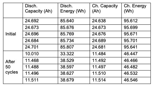 | 100 000 cycles | Un test 50 cycles sur cellule abîmée | Cyclage long sur cellule saine |